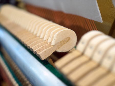 | アクション | オリジナル部品にて完全調整済み。ハンマーファイリング、ねじれ・遊びの調整、ダンパー調整、レットオフ調整等ピアノ整調をすべて行っております。 マフラーフェルトは新品に貼り替え。 |