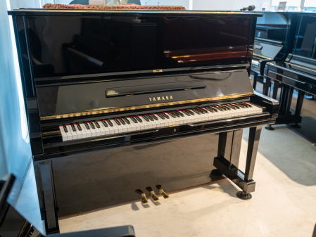 ヤマハのスタンダード普及『Uシリーズ』の3型(高さ131cm)モデル。 特徴はピアノの高さが131cmとアップライトピアノの中では一番背が高く、そのため大きな音は大きく、小さな音もより響くように弦の長さが長く、響板の面積も大きくなっています。音色やタッチにクセがなく、入門者から上級者まで長く使っていただける、とても良いピアノです。 材質と設計がとても良かったので、今でもしっかりときれいな音でなります。