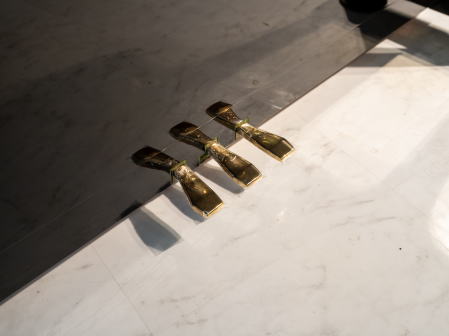 | 外装 | 傷も少なくとてもきれいなピアノです。塗装面バフ掛け仕上げ、蝶番・ペダル等の真鍮製パーツも磨き上げ済み。 |